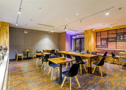 酒店大堂大气雅致,接待处是木质结构尽显温柔。地上的大理石提升明亮度,使空间明亮宽敞。公区内有书架搭配设计感沙发,跳色重提升空间的丰富感。客房明亮舒适,简洁大气,客房设计富有途客中国的经典特色,带给宾客熟悉而亲切的入住体验。