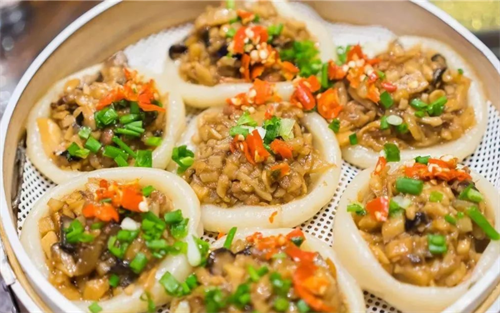 上饶米粉是上饶的特色名吃。米粉质地柔韧,富有弹性,水煮不糊汤,干炒不易断,配以各种菜码或汤料进行汤煮或干炒,爽滑入味。而米粉中铅山烫粉最是有名。香嫩的瘦肉丝,配上葱、姜、大蒜、香油等各种佐料,在深秋和冬日里,吃一碗,暖身又暖心。