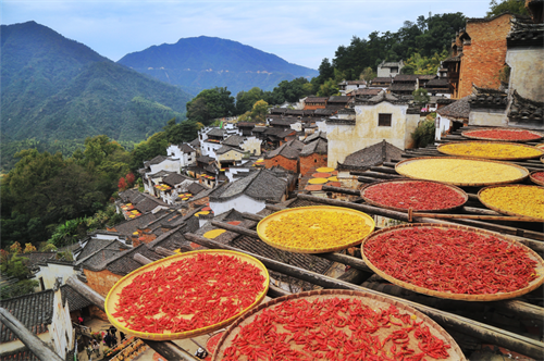 婺源的山水毫不逊色于其他著名景点,婺的山美水美,更多了民风民俗的淳朴。秋日的婺源是以金风送爽的姿态出现的。秋日婺源篁岭的晒秋,红黄相间的点燃秋日里最亮丽的色彩11月的深秋,便去婺源石城,其枫叶红艳如火,青瓦白墙笼着轻薄的晨雾,绚烂翩跹,送游客一场不可辜负的“视觉盛宴”。