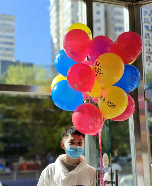作为最后一个站点,速8精选酒店北京鸟巢安立路地铁站店。已为队员及住店宾客准备了互动抽奖活动,如按摩、跳绳、行李牌等,还在大厅准备了蜂蜜水、雪菊茶、咖啡、新鲜水果等,这些通过速8捐赠善款购买的助农产品得到了宾客的喜欢,也令他们感到了公益的力量,活动现场五颜六色的速8爱心气球,吸引了许多小朋友的注意,工作人员也将气球赠与她们,希望能够在孩子的心中种下一颗公益的种子。