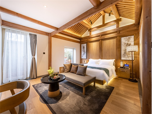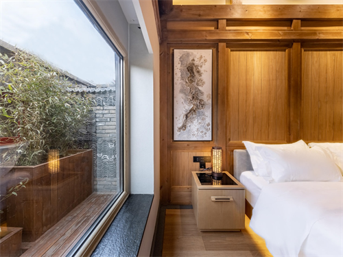秉承着“粗糙的细腻”的设计理念,ZMAX HOTELS·北京金融街熙苑四合院店并未对四合院进行过多的粉饰。客房内可见裸露的原始结构体,家具也大多是原木色,是一方宁静又自然的室内环境。但每位入住的客人都可以通过手机,将室内的灯光、空调调控至自己最舒服的模式,通过智控设备在细节处演绎具有品质感的现代生活。