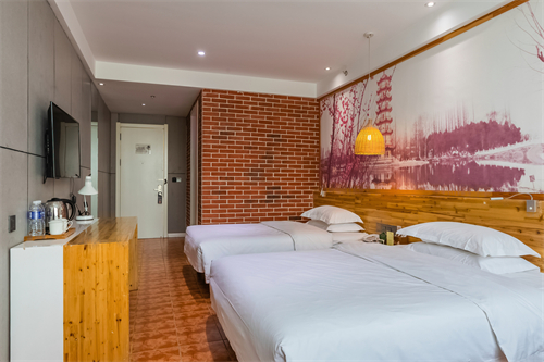 酒店外立面高端大气。大堂开放式的公共空间设计整洁明亮。酒店以树木为设计主题,富有自然之感。还将多元的元素与独特风格融为一体,打造城市文艺空间新地标。休息区柔软雅致的沙发搭配盆栽,喝着饮料或香茗,尽享舒适。客房宽敞舒适,通风和采光极好,原木色系的地板和家具、淡雅的寝具布草,安静的环境,造就品质睡眠。