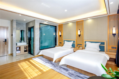 其次,客房均采无门卡开锁,客人仅需一部手机即可实现一键开门,十分便捷。客房内的所有设施均配备齐全,每一间客房均配备了舒适的床垫、亲肤柔软的床品和特定香氛洗护用品,为客人打造品质舒适的睡眠体验。