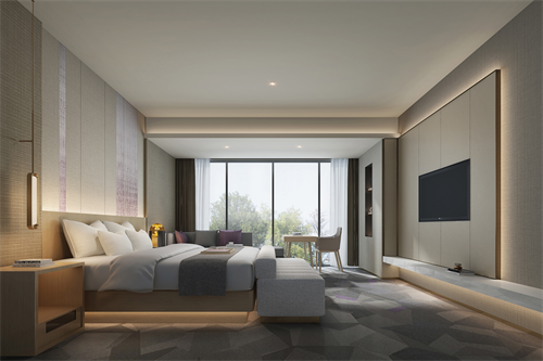 麗枫的房间整体色调采用更加自然的原木色与紫色,尽显格调;软装设计上更注重对法式风格经典元素的提炼和表达,每一个细节都将酒店的自然自在的理念尽情展示。