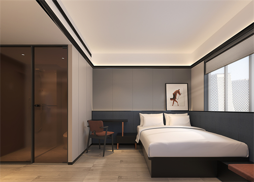 易佰酒店作为集团旗下年轻、时尚、小而精美的酒店品牌,酒店以时尚家居理念精心设计,以“时尚、舒适、简约”为主导。客房作为休憩放松的地方,简洁舒适。纯白的大床上铺陈品质床旗,与温柔可人的实木家具搭配在一起,丰富了空间的层次感,时尚又有暖意。