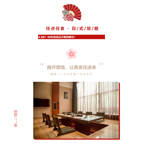 酒店现推出一品日韩料理,让每一位吃货任点任食优惠享不停。