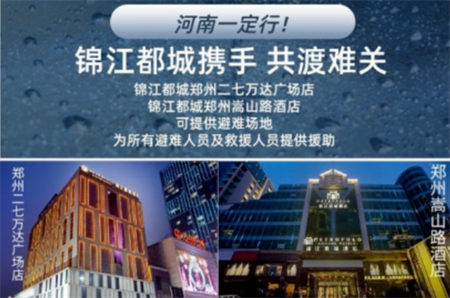 洪水无情,锦江有爱,锦江都城郑州二七万达广场酒店在暴雨来袭时免住宿费,搭建爱心驿站,收到受困市民回馈锦旗表示感谢助力西安共同抗疫、模范征用酒店,许多网友表示“破防了。”