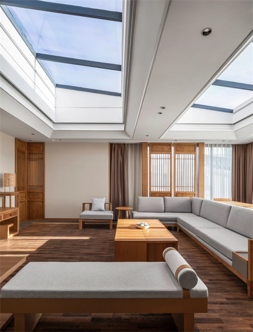 湖南郴州东江湖雅阁度假酒店(雅阁酒店集团旗下高端度假品牌),室外与自然相融,处处挥洒着山水的写意。室内设计精细,考虑到客户的每一种需求。大面积的天窗、落地窗等等,又将自然美景纳入。真是,人在屋中,如在画中游,画在景中走。