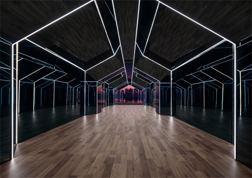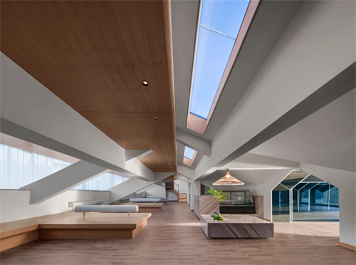 进入酒店内部,川上撷取东江之 “渔”元素,空间透过镂空等方式,引导光交织成网。游走其中,恍若穿光破网,失重、迷离。