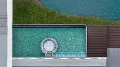 上善若水,川流不息。坐落于江畔的建筑,将水元素写入基因。从户外的无边泳池,到一层入口处的水景,再到庭院的山水小景,处处都是对水的巧妙运用。