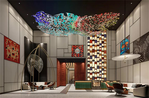 酒店秉承着Art Deco的建筑设计理念,注重现代审美与属地文化的有机融合,公区以当地特色的马赛克为元素,通过排列组合的几何图案,并赋予墙壁缤纷色彩,大堂设计呈现一派“车谷”特色。