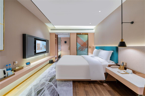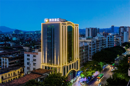 肇庆虽没有广佛发展快,但是她在粤港澳大湾区也占据着重要地理位置,其交通便捷,区位优势明显,是经济发达地区通往西南各省的重要交通枢纽。为了给更多商旅人士带来品质快生活空间的体验,潮漫酒店在肇庆的第二家门店——潮漫酒店·肇庆七星岩景区牌坊店落成迎客!潮漫酒店·肇庆七星岩景区牌坊店位于端州区端州六路,地处七星岩旅游区,邻近城际轻轨肇庆站,肇庆粤运汽车总站。酒店出发,驾车约5分钟即可到达伴月湖公园;距5A景区七星岩风景区,七星岩牌坊广场,将军山,肇庆古城墙,包公祠,阅江楼,芙蓉公园也仅约15分钟车程,地理位置优越,商业繁荣,吃喝玩乐便利,能够满足旅游娱乐购物等一站式需求。酒店大堂通过用灯光的渲染,深化品质快生活的感受;地面采用水纹瓷砖,墙面则采用大理石瓷砖,并在前台增加了玫瑰金三棱镜墙面,不仅给整体空间加以灵动的元素,还营造了空间的独特态度。酒店客房现拥有60余间,有各类房型房型可供选择,客房均位于楼层高层,远离噪音污染。