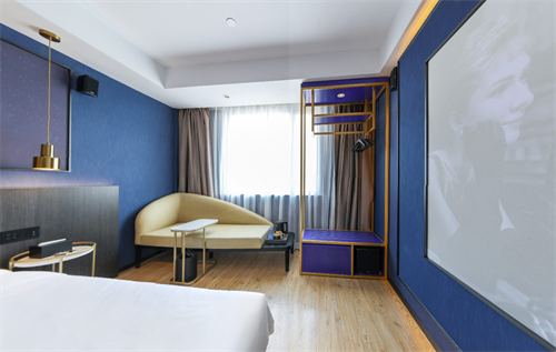巨片电影酒店于2019年开业,定位精准:90后,Z世代消费主题,热爱电影。通过技术和电影风格的装饰与服务为顾客提供影院级住宿体验。