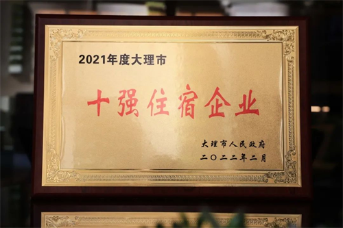 雅阁酒店集团|大理悦云雅阁度假酒店荣获大理市十强住宿企业