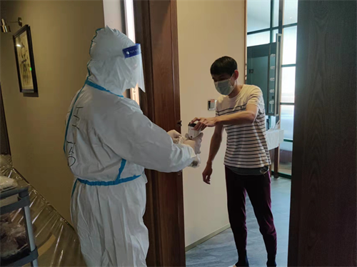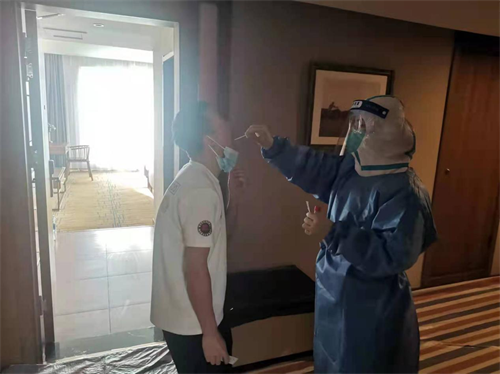 门店迅速做出反应,在48小时内把酒店布置成隔离点,每日配合医务人员核酸检验和人员统计工作,24小时在岗监管隔离人员,做到防疫工作严谨安全,为呼和浩特市的防疫工作作出贡献。