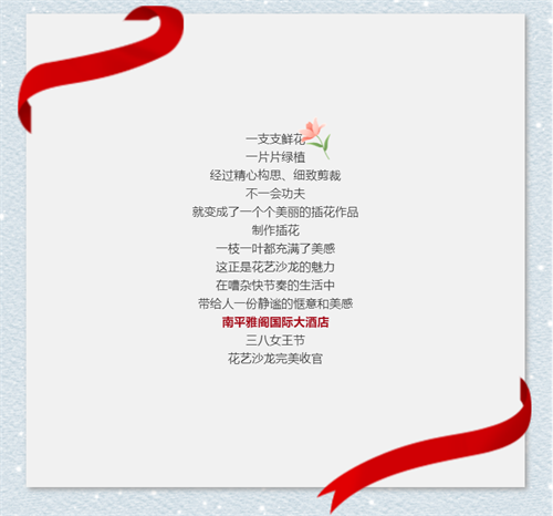 福建南平雅阁国际大酒店(雅阁酒店集团旗下成员酒店)三八女王节花艺沙龙完美收官。