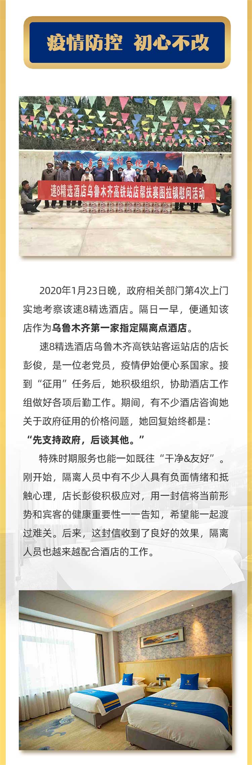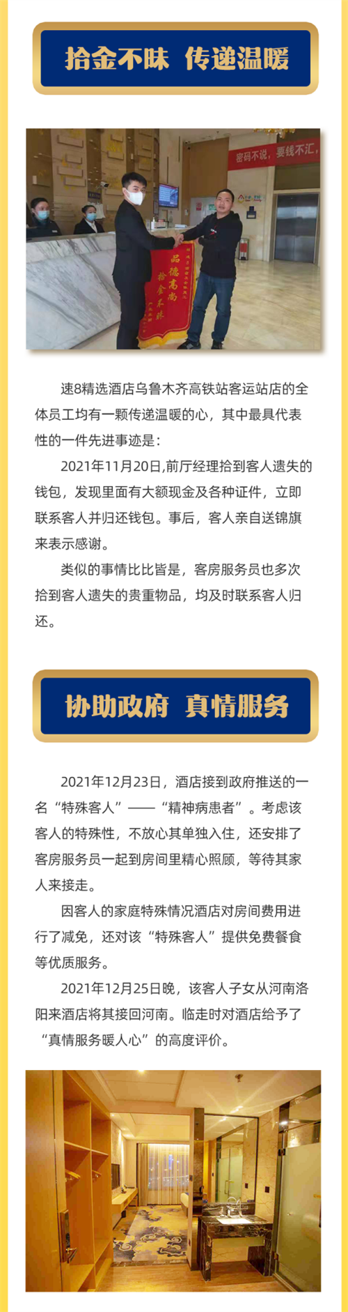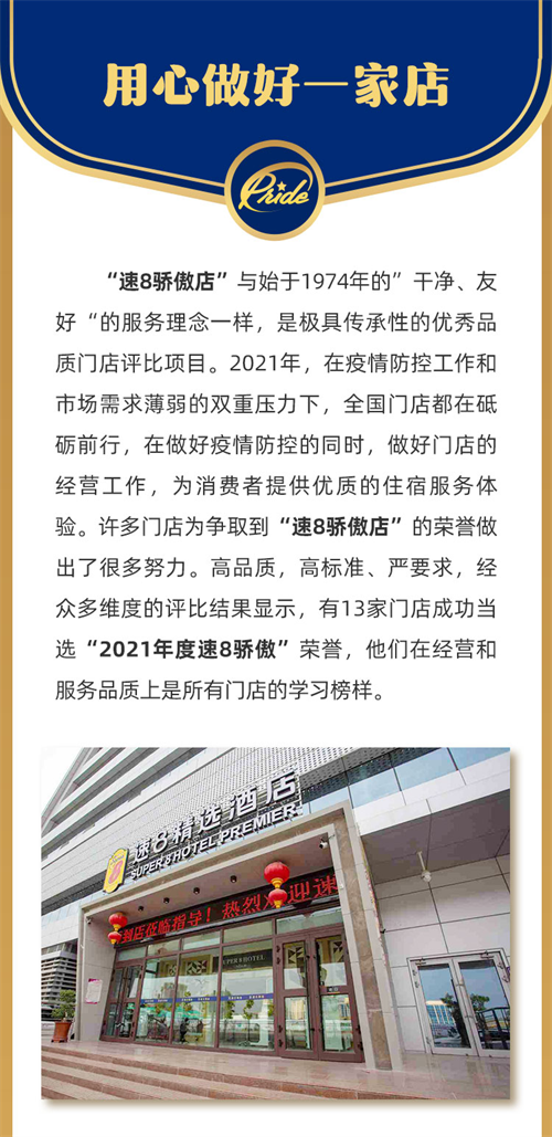 【速8骄傲·第1期】用心做好一家店 温德姆酒店集团 · 2022-03-15 17:20:40 分享到 打开微信“扫一扫”,打开网页后点击屏幕右上角分享按钮。 一起走进2021“速8骄傲店” (图片来源速8酒店) 速8酒店 温德姆酒店集团 0