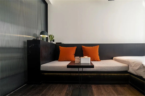 房间内运用了精妙绝伦玻璃+铁框的搭配,玻璃的通透、加上铁的金属质感,配合着夜晚时分该有的情调,或者是看星星,或是看灯火,或是看四季良辰,都是一眼通透,然后陷入各自设定的无限憧憬之中。