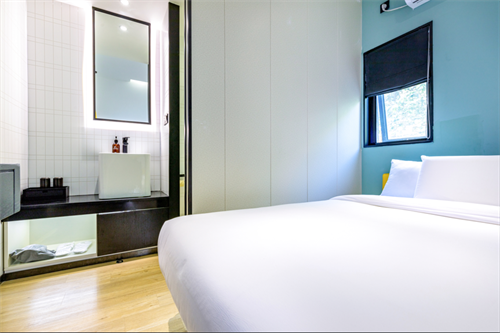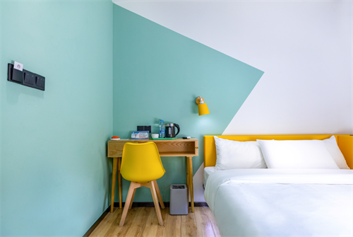 酒店设计年轻时尚活力,整体空间以丰富明丽的色彩,和时尚开放的社交空间,为年轻人打造美好下榻之地。客房注重宽敞和明亮,多色彩的配搭再添加一点几何感的软饰,将整个房间的干净而又柔软的气质显现得淋漓尽至。