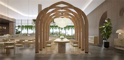 以鲜花和绿植为元素,荟语酒店打造了入口有花店、大堂有园林、办公区有树的都市“幸福秘境”。通过生活方式+社区构建多维消费场景,增加非房收入,创造多元的可持续盈利模式。