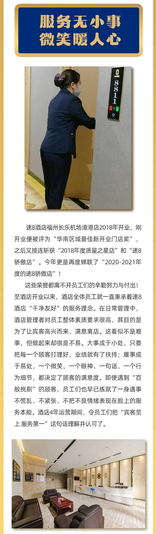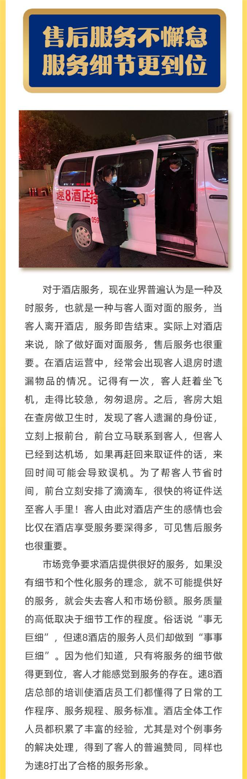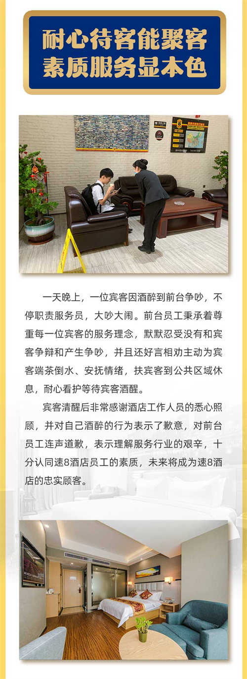 【速8骄傲·第3期】宾客至上 服务第一 温德姆酒店集团 · 2022-04-02 15:54:05 分享到 打开微信“扫一扫”,打开网页后点击屏幕右上角分享按钮。 一起走进速8骄傲店 (图片来源速8酒店) 速8酒店 温德姆酒店集团 0