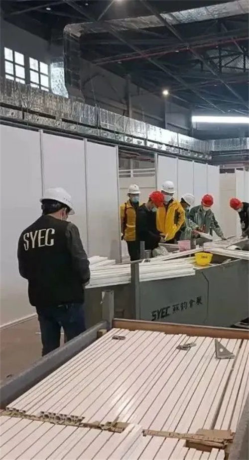 当天,方舱医院建设指挥部进驻展馆统筹各建设单位的工作,绿地国际会展淮海国际博览中心也正式被授权搭建方舱医院的病床隔断任务,项目团队不舍昼夜,积极寻求方舱快速搭建方案,同事们投入一线,争分夺秒,不辞辛苦,以时不我待、只争朝夕的精神通宵工作。