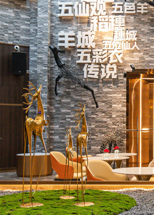为了营造别具一番韵味的“饮酒会友”场景,精酿餐吧ZaoBar的用餐环境也同样充满设计巧思。城市故事中的"五羊"通过现代的艺术表现手法,进行重新演绎,变成飞檐走壁、活灵活现的小羊雕塑。在岭南园林的绿意映衬下,更显灵动。青石砖、骑楼街等传统建筑的现代美学演绎,则凸显了岭南文化特色。