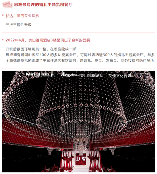 雅阁酒店集团 | 恩施网红婚礼堂4月启幕,浪漫空间独一无二
