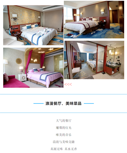 酒店时尚舒适,房间内有超大的落地窗,视野十分开阔,室内设施设备配置齐全,床上用品也均采用高品质的全棉织品,此外还配套多功能厅、中小型会议室、中餐厅、香榭岛咖啡西餐厅、健身、SPA、KTV等娱乐设施,还有地方特色的餐厅,公司年会、私人宴请、婚宴、儿童看护、礼宾、提供餐、管家、租车等服务,让每一位宾客放松身心,尽享轻松旅途。