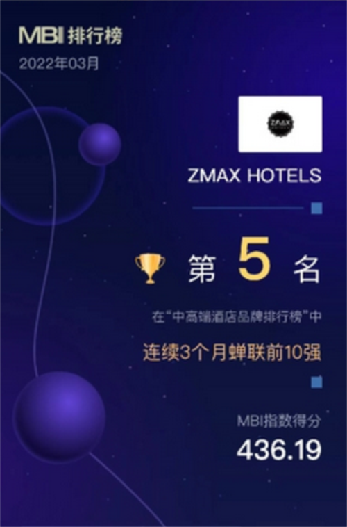 ZMAX和潮漫酒店位居迈点多榜单第十,关注度不减