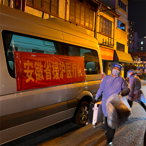 安保队员邵兵,老家是宣城,在宣城医疗队将要离开之际,他控制不住内心激动,一边流泪,一边对着医护人员说:“我也是安徽的,非常高兴我们家乡的医疗队能来上海支援,这两天我能够为家乡的医疗队服务,我真的很自豪,相信上海这次一定能战胜疫情,上海加油!”宣城医疗队的队员们也为之感动,大家一起呐喊起来,“上海加油!”