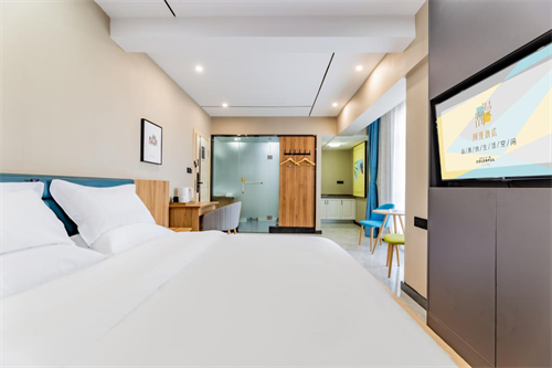 ZMAX HOTELS·广州珠江新城五羊邨地铁站店共拥有“一张床XL、一张床XL影音、一张床XL、有个客厅MAX、两张床XL、彩蛋房”六种房型,同时每间客房都配置了智控设备,酒店住客不仅可以通过手机进行房门解锁,在客房内轻呼“小ZAO小ZAO”还可唤醒智能设备,通过语音实现控制客房内的空调温度、调节氛围灯光、呼叫客房服务等功能。