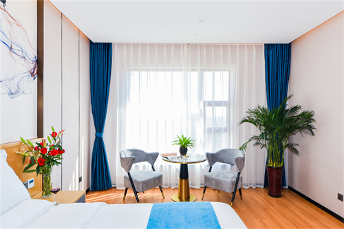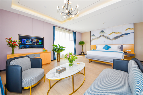 酒店设有 209间豪华客房,客房专享超大空间,有独立蓝牙音响、全智能马桶、顶喷淋浴系统、智能开锁及几十公里引入的高品质山泉直饮水等高端配置。