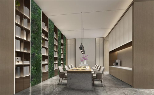 酒店多功能区,集独立餐区、书吧、开放性公众休闲为一体,还配有自助的茶水台咖啡机,更添轻松愉悦氛围。书架区与麗能量产品进行结合摆设,让住客随享带回家。