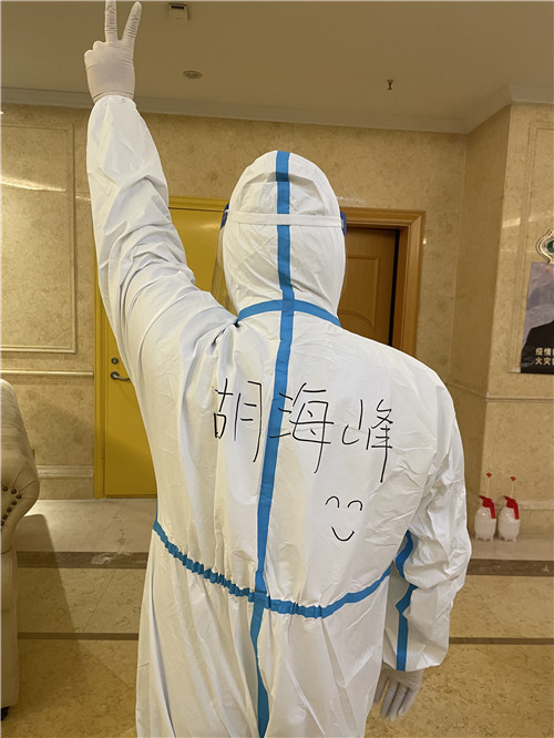 这期间,胡海峰多次协助点位长做好隔离人员用水用电及消防安全防范工作。此外,他还每天跑上跑下,为隔离人员消毒、送饭、转运垃圾。为防止污染,电梯仅限于三层以下清洁区使用,每次胡海峰都是跑楼,汗水湿透了隔离服。对此,胡海峰表示:“我是一名老兵,也是一名党员,这点苦没什么。”