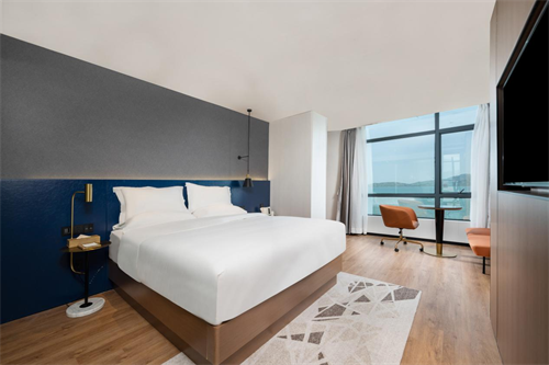 客房内均配备有高清大屏电视、舒适的床垫、亲肤柔软的床品及品牌定制香氛洗护等,打造品质舒适的睡眠体验。部分房型还可看到海域,风景独特。