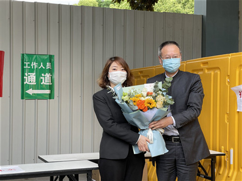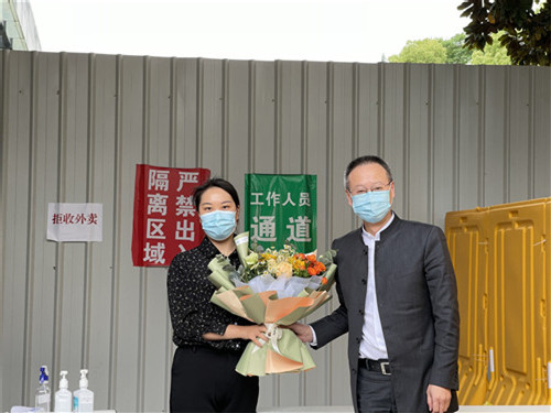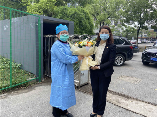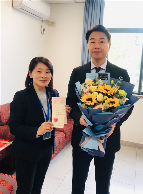 同一时间,2021年度“创元之星”—杭州店徐婷婷、淮安白鹭湖书香府邸穆晴以及两名工作中的抗疫先进代表—新浒店马琳、平江府邸项元林也在各自的岗位上先后收到书香集团党委、工会送上的鲜花与祝福。先进代表们纷纷表示,能在五一节前夕收到来自集团的关心与祝福,感到很暖心也很受鼓舞,这将更加激励她们一如既往地在各自的工作岗位上为书香早日走出疫情影响的阴霾,为书香未来的发展而努力奋斗!