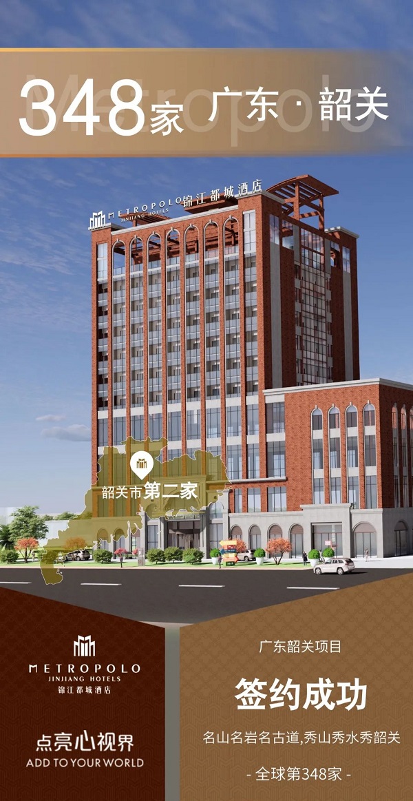 锦江都城酒店广东韶关项目,全球第348家酒店签约成功。