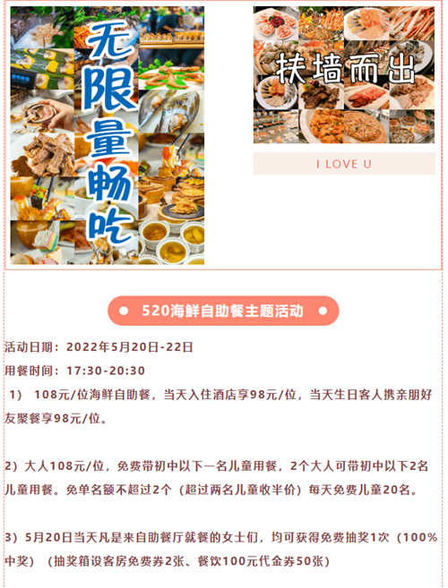 雅阁酒店集团|金沙澳斯特酒店520海鲜自助大餐,为爱打call
