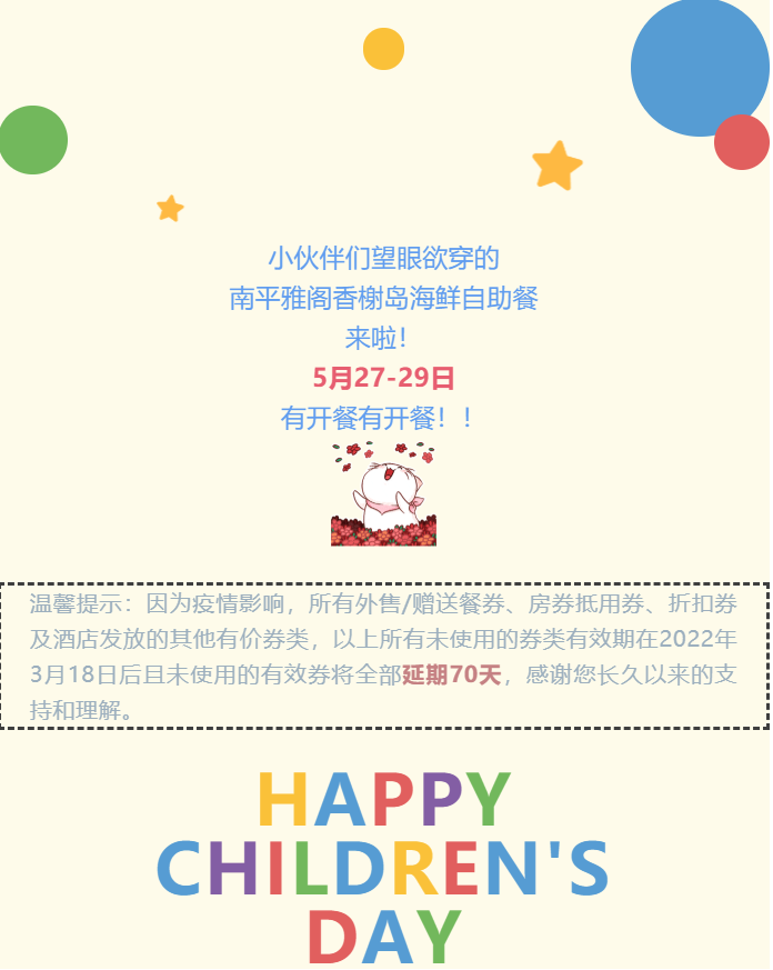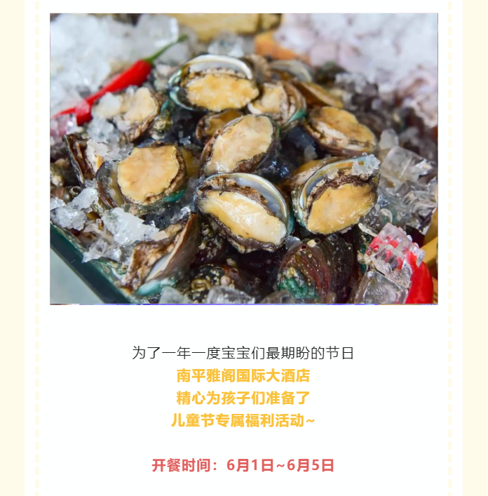 “六一”儿童节,宝宝们的节日即将到来啦!!!吃粽子的端午节也紧随其后,当“六一”儿童节遇到端午节,福建南平雅阁国际大酒店(雅阁酒店集团旗下成员酒店)6.1~6.5日连嗨五天,为各位带宝宝出行的家庭提供超值团餐优惠来袭。