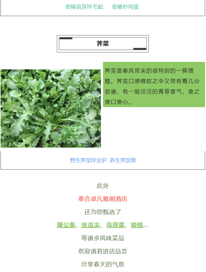 雅阁酒店集团|泰合卓凡雅阁酒店,夏季时令野菜上新