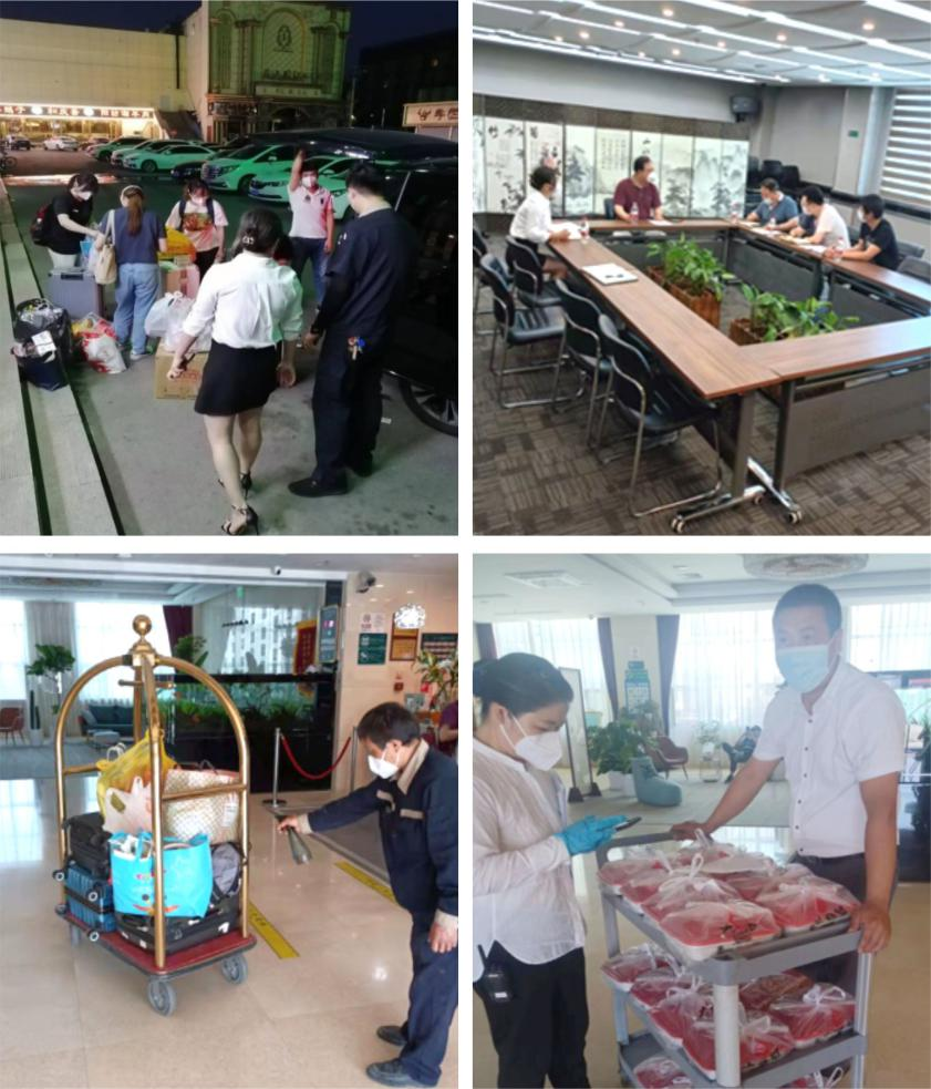 疫情就是命令,酒店接到通知后,连夜召开接待紧急会议,制定出周密接待流程和工作计划,建立健全个性化服务标准,并组建医疗人员和酒店工作人员互助交流群,以便随时保持群里与医务人员的沟通。为了更好的提供休养环境,酒店店总和在岗员工投入工作,党员带头,迅速进行房间布置、消毒、排房、解决就餐等工作。