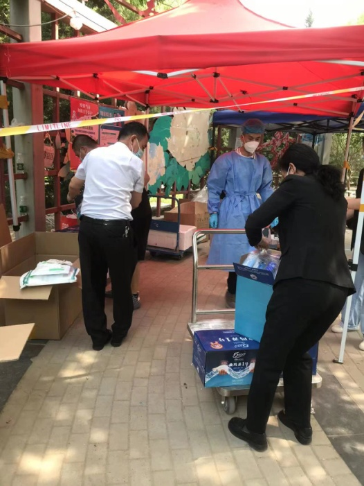 5月份北京丰台区被疫情管控期间,山水时尚酒店(北京天坛店)梁红红、王跃雷、白锁军几位同志在公司的号召下,加入了这场没有硝烟的疫情防控阻击战。