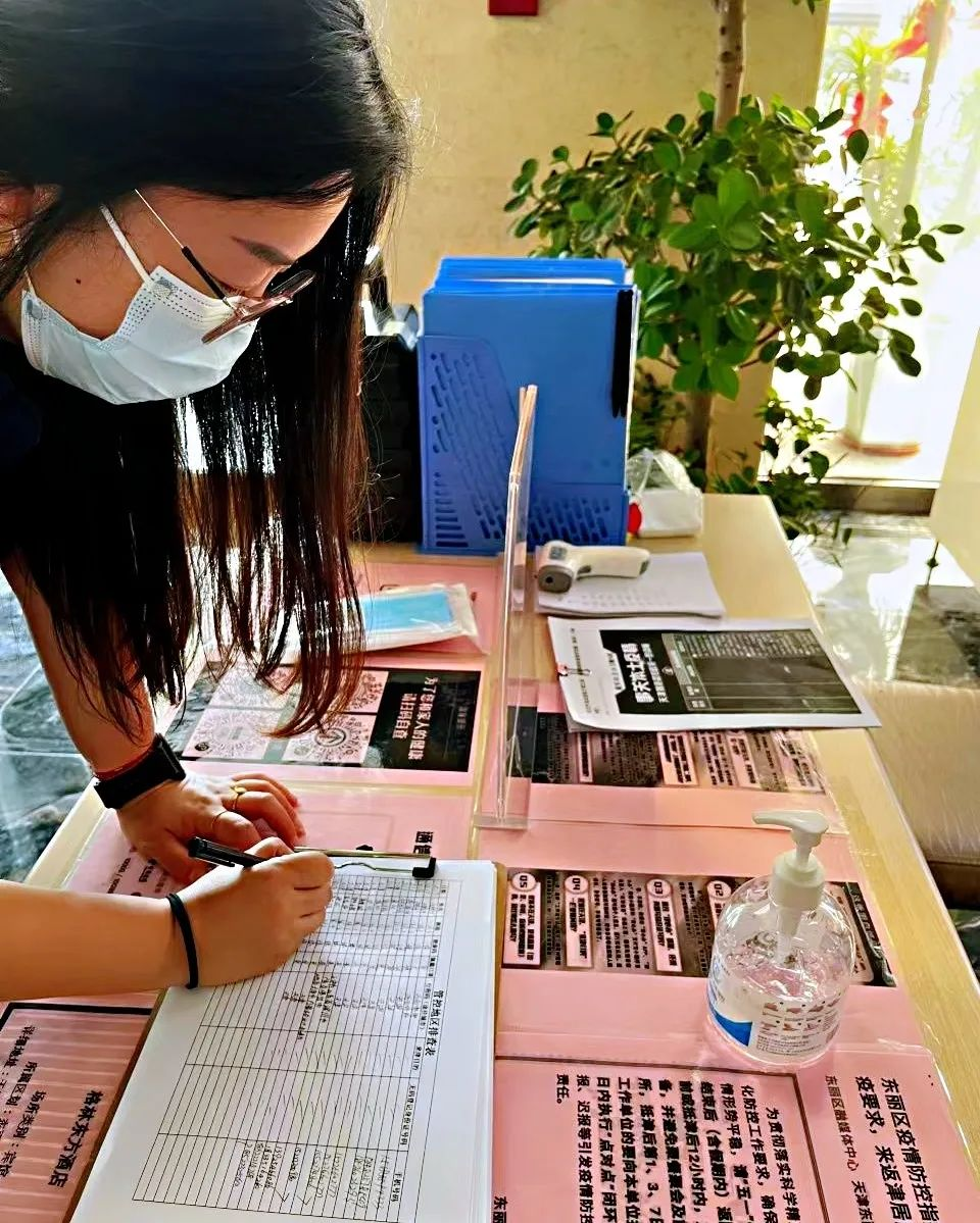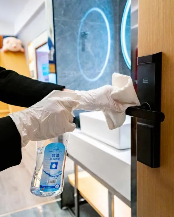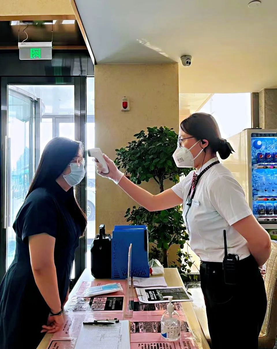 所有员工须持阴性核酸报告,岗前测温正常,佩戴口罩方可上岗。入住客人测量体温、查验行程码等,全力保障住宿安全。许多酒店前台还配备口罩、手套、洗手液、消毒液等防护用品,以备客人不时之需。酒店客房配备一次性安全用品,客人可以放心使用。
