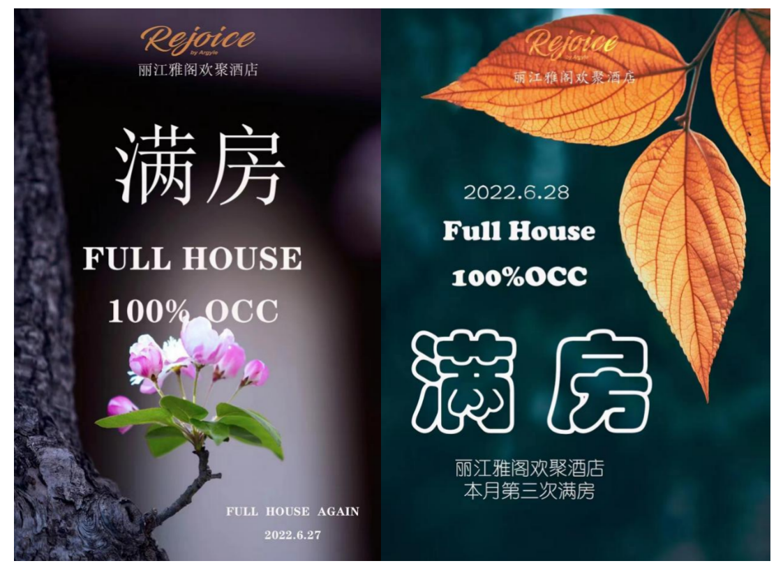 6月27&28日入住率100%,丽江雅阁欢聚酒店(雅阁酒店集团旗下成员酒店)本月又㕛满房啦~