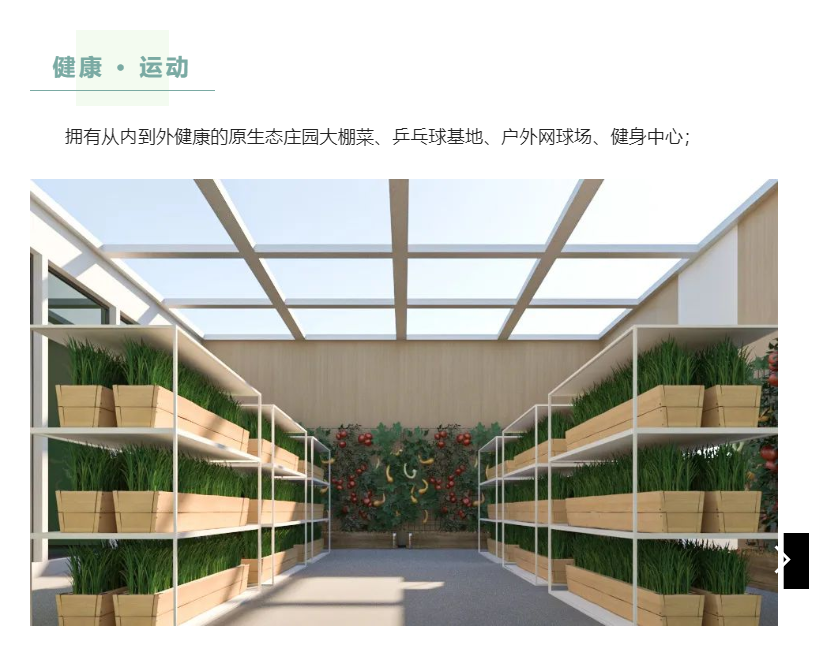 拥有从内到外健康的原生态庄园大棚菜、乒乓球基地、户外网球场、健身中心;