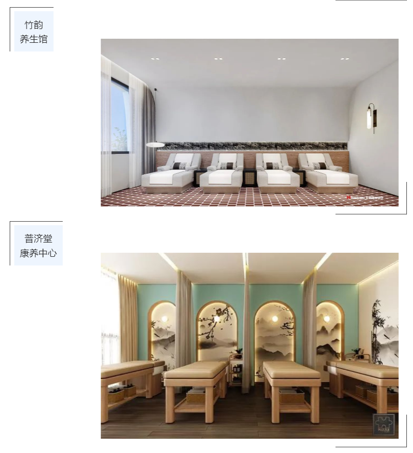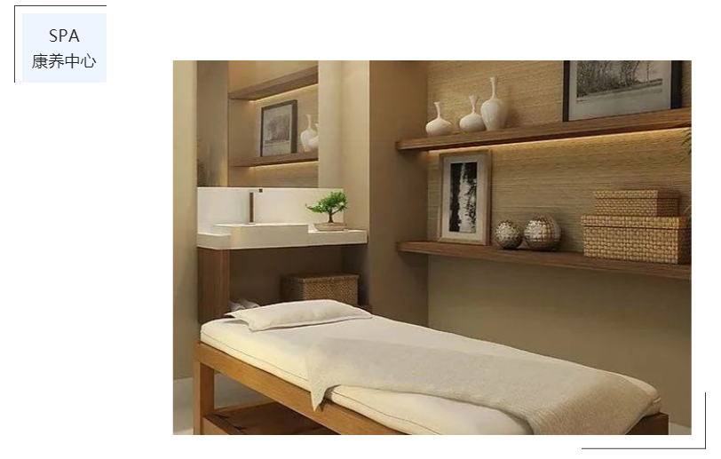 拥有颐养身心的SPA康养中心、竹韵养生馆、普济堂康养中心、茶室、听海书吧;