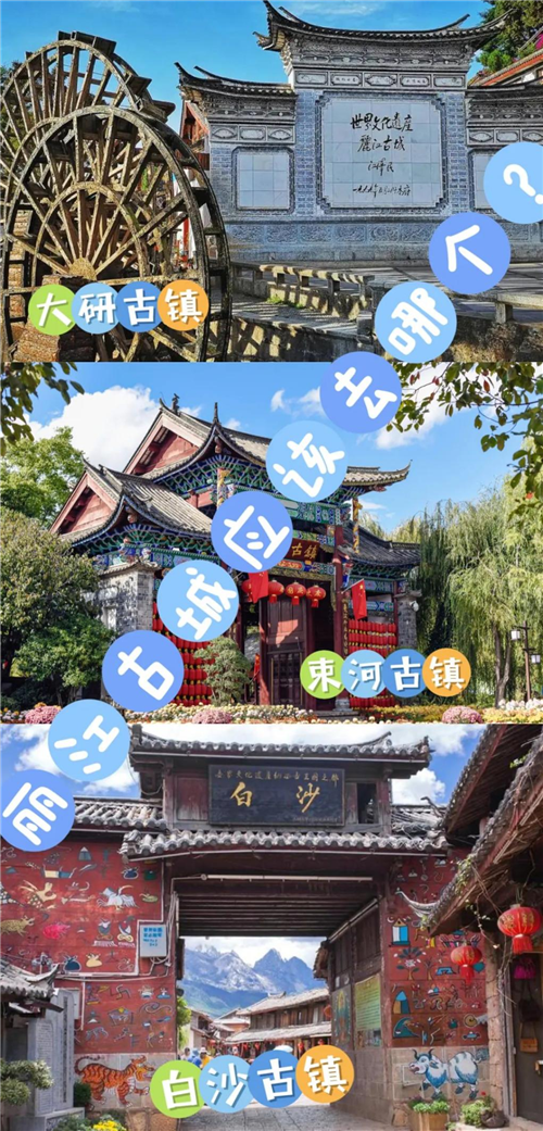一座没有城墙的古城,也就是大家常说的丽江古城。它是丽江三个古镇中最为热闹繁华的一个,商业程度也是其他两个古镇所达不到的,我们所熟知的地标性建筑大水车就在大研古镇入口。网红油纸伞、酒吧一条街、四方街、木府等这些必打卡景点都在大研古镇里,尤其晚上最为热闹也是人最多的时候,四方街感受纳西孃孃们的打跳、到观景台观古城夜景....