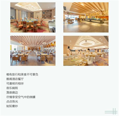 香榭岛西餐厅和中餐包房为八方来客,提供国际特色风味自助餐等服务。