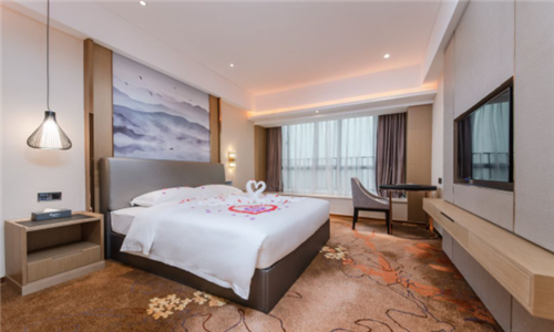酒店简约轻奢的装修,共有200间多种装修风格的豪华客房,配套的健身房、会议室等设施。